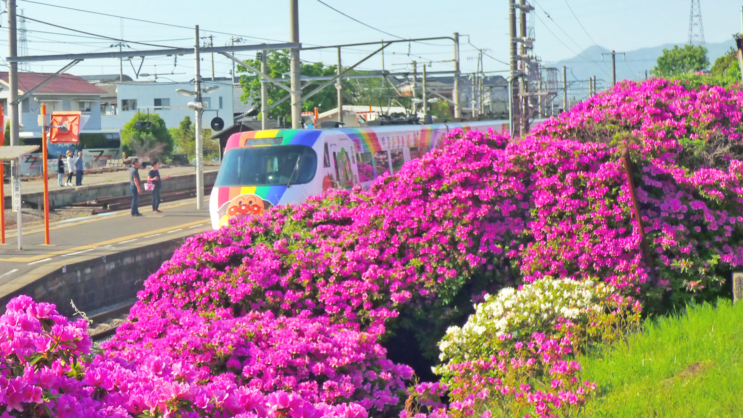 春になるとJR豊浜駅のホームを250本の赤やピンクのつつじが埋め尽くします。豊浜駅は美しい花のある駅全国コンクールで、全国一に選ばれたこともあり、自治会の方々が年に数回ボランティアでお世話をしてくれているおかげで、5月上旬には美しいつつじが咲き乱れます。祭り当日、駅前では餅つき大会、フリーマーケット、花と野菜の青空市、献血、バザーなど多彩なイベントが行われます。摘んできたよもぎを使って作るよもぎ餅は、香りがよくあっという間に完売するほどの人気があります。是非一度ご賞味ください。
