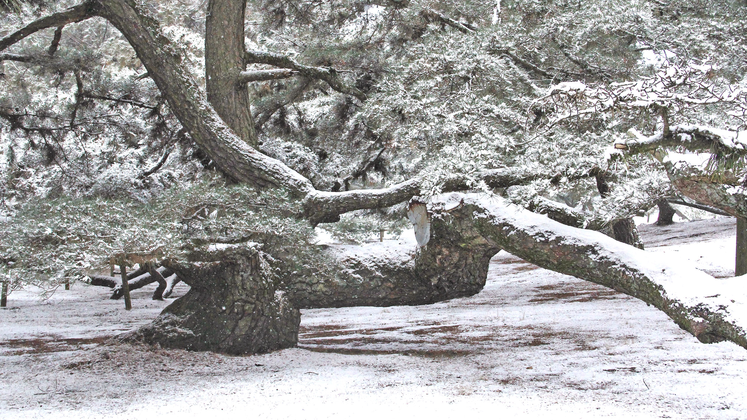 観音寺松原(かんおんじまつばら)は、有明浜に続く松原で海流と風により砂が運ばれて海岸洲が形成され、その砂洲上に成立した海岸松林です。その数50,000本といわれ、変化に富んだ松の景観が楽しめます。銭形砂絵を囲むように植えられている老松2,200本は、砂絵を引きたてており特に綺麗です。松林の中には、樹齢200年にもなる老松の大木もあり、さまざまな姿で人々の目を楽しませてくれます。また、「幻のキノコ」といわれているショウロの姿を見ることもできるかもしれません。観音寺松原は、瀬戸内海国立公園第2種特別地域や、白砂青松百選に選定されています。