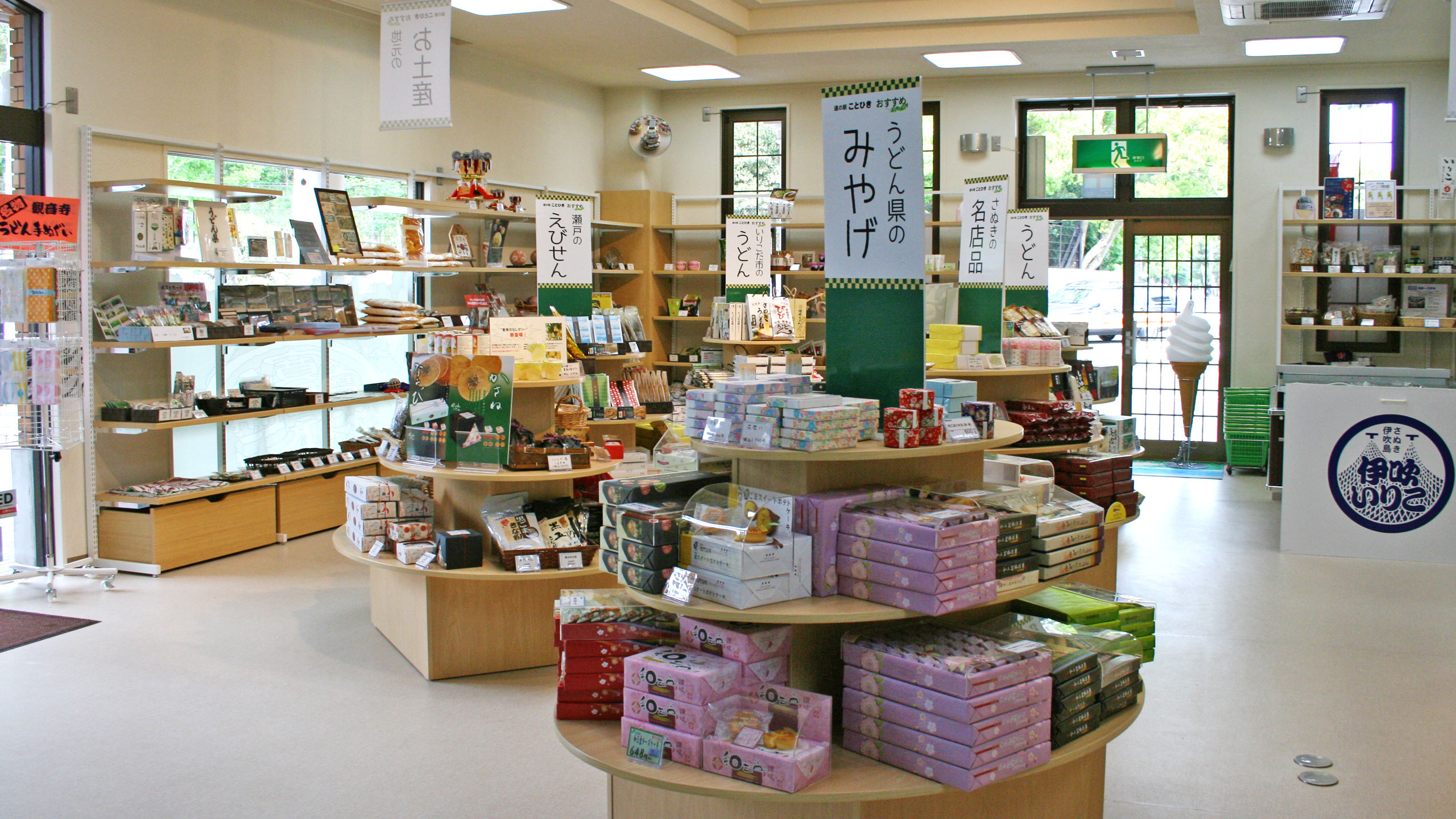 道の駅「ことひき」は、名勝 琴弾公園内にあり、「世界のコイン館」「観音寺市総合コミュニティセンター」「大平正芳記念館」の4施設からなる道の駅です。ギフトショップでは、伊吹いりこ、讃岐うどん、名菓などのお土産品やご当地限定品などを販売しています。土日には、地元の特産物やお総菜などが販売される産直市も開かれています。