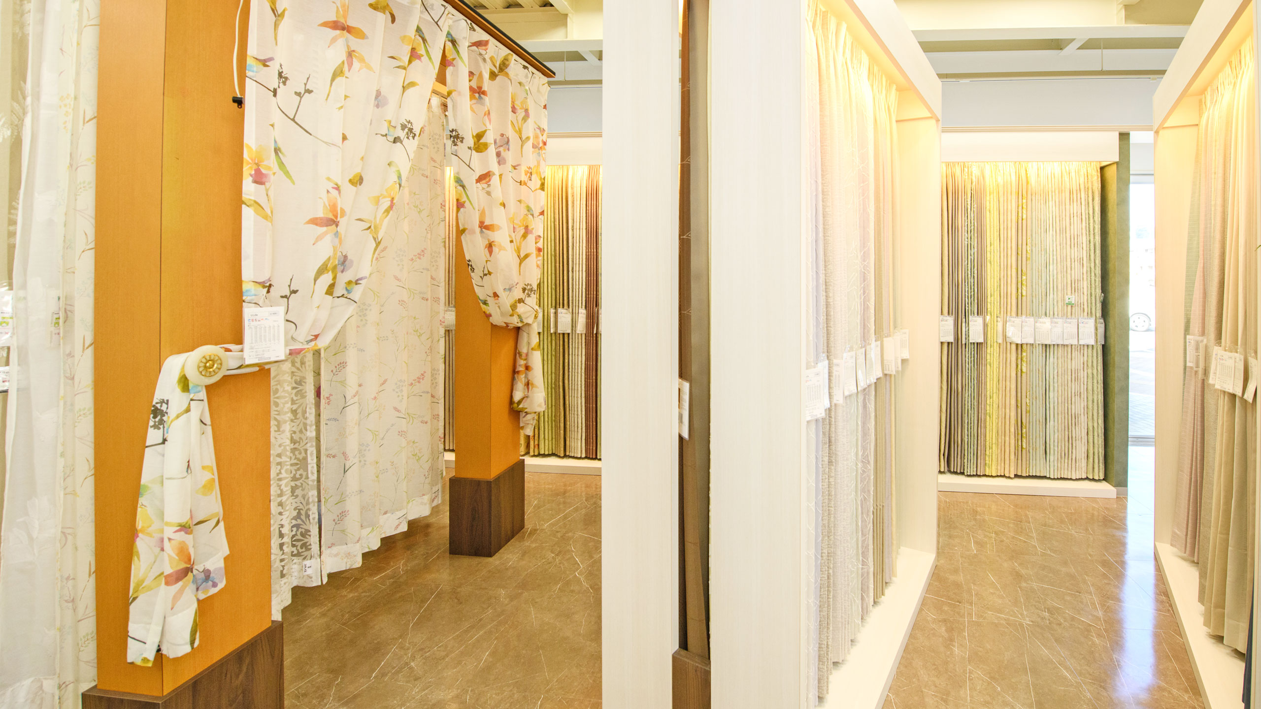 指寅タンス店(さしとらたんすてん)は、安政元年に指物大工として家具製造小売業を創業した歴史のあるお店です。昭和50年に内装工事、カーテン小売り事業開始し、現在は本社と店舗を移転統合して1階で家具、漆器(輪島塗り)、カーテンの販売、2階でカーテン、段通絨毯の販売をしています。2階にはカフェエリアも設けられています。